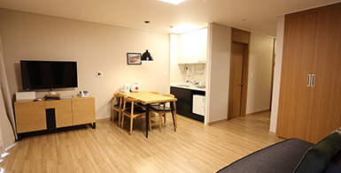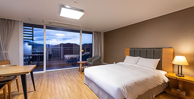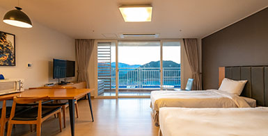 침실겸거실,온돌실, 화장실(샤워부스)로 구성되어있으며 실속을 중시하는 가족 친화형 리조트객실
