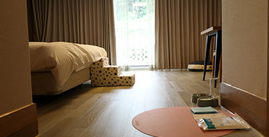침실겸거실,온돌실, 화장실(샤워부스)로 구성되어있으며 반려견동반이 가능한 리조트객실